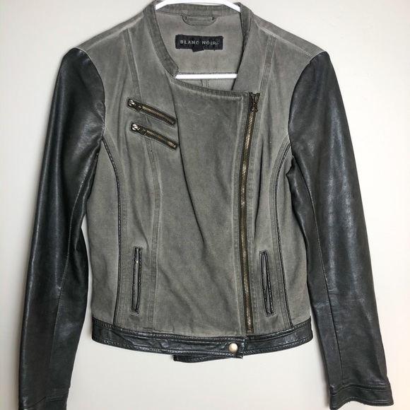 Leather/cotton mix jacket. Olive/black/grey. Only worn a couple of times. Like new!