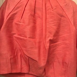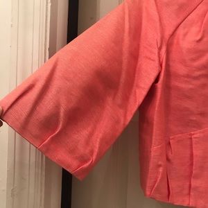 Light weight one button bubble crop design jacket. Coral color. Mid length sleeves