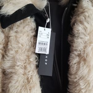 Black suede and cream shearling zip up jacket. Excellent condition. Never worn. Runs small.