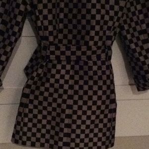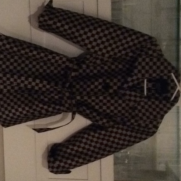 Three-quarter length business jacket. She’ll 100 % polyester, lining-100% acetate, cuffed sleeve. Dry Clean. Never worn. Very smart looking for working ladies.