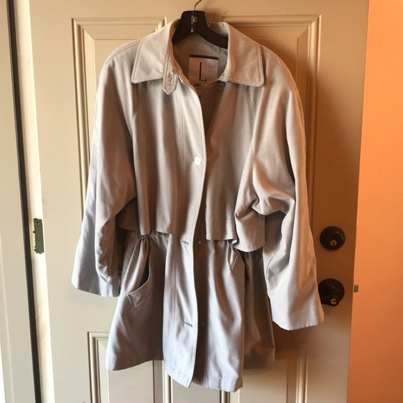 Nice, lightweight jacket with waist cinching ability, and side pockets. Tag says small, but it is very roomy. Fits more like a Large