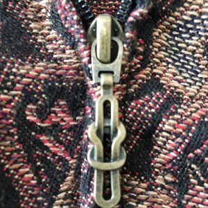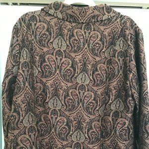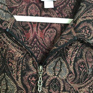Christopher and Banks unlined jacket in a paisley print of black, red and cream. Size XL. Princess seams in front. Unlined. Light weight. Sleeves from shoulder to hemline measure 24.5", chest is 47", and hips measure 44". Really classy looking can dress up skirts, pants even jeans. Used gently.