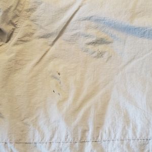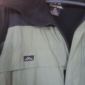 Nice heavy winter jacket. Great for skiing, snowboarding or cold winter days!! Has a couple small stains on the back, shown in the picture. Has a hood that can be zipped in or out. It's like a olive green color.