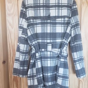 Super cute and warm ladies coat. Can be dressed up or down. Great plaid design! Bottom on back is broke but doesn't affect the jacket. Only worn as few times. Still in great condition.