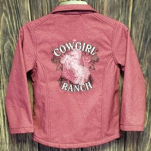 Cowgirl jacket. Super cute jackets with fun rhinestones. Has a small stain on sleeve. It's super small and other then that great condition.