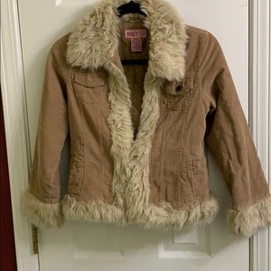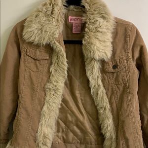 Corduroy jacket with fur trim