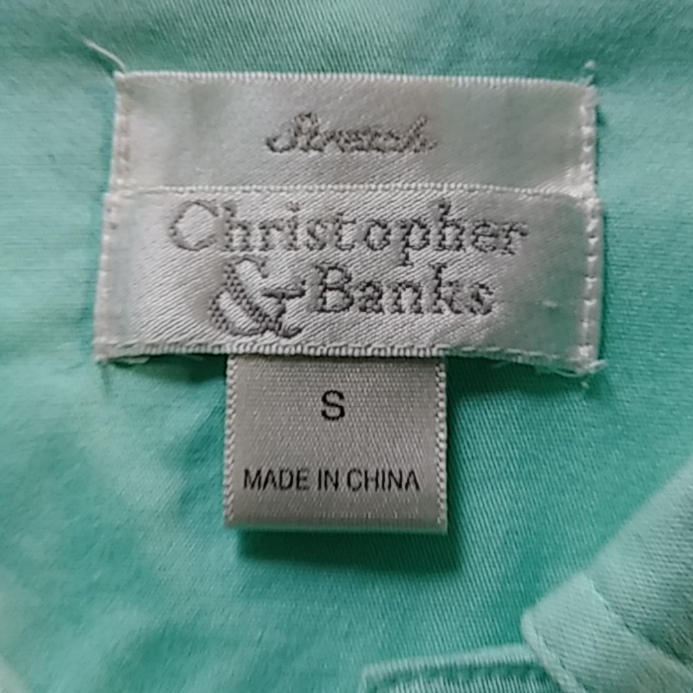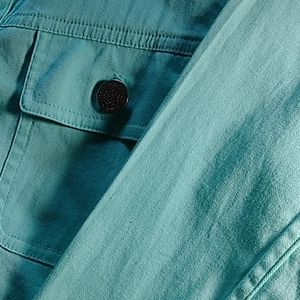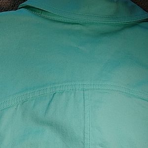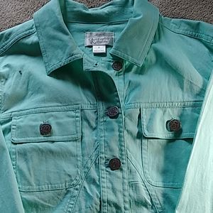 Spring jacket beautiful spring green color 3/4 length sleeves with snap down front .two breast pockets with buttoned size small yoked back stretch material.