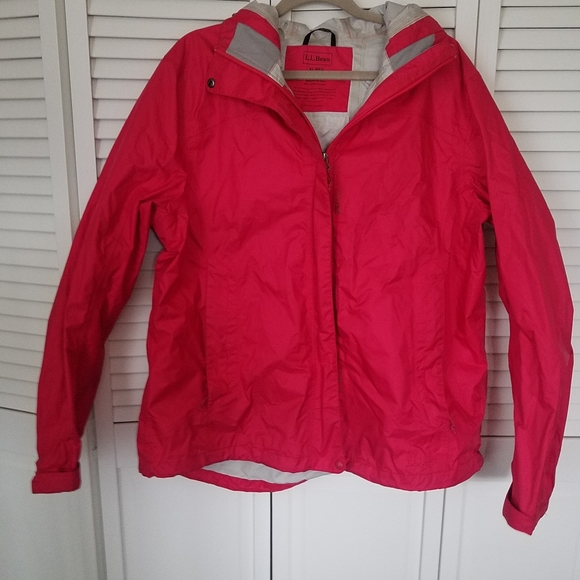 LL Bean Pink rain slicker with hood. Very clean, no stains, well taken care of
