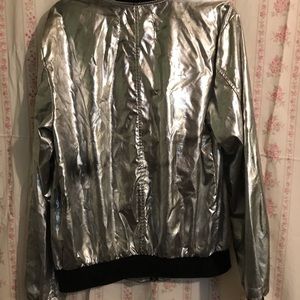 This silver metallic jacket is a fun piece to own. Jacket came with one of the original imperfection markings tag. This one has tiny black dots on one sleeve side. As pictured. No holes. No tears. Still in very good shape. My daughter simply out grew it too fast.