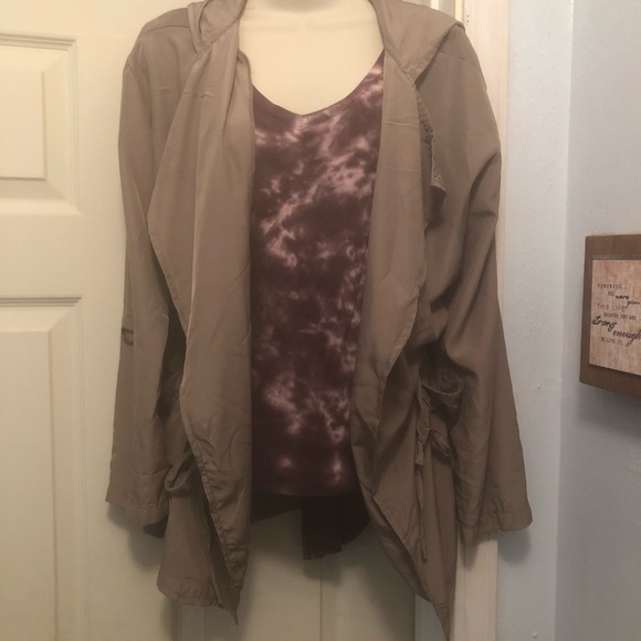 Light jacket goes perfect with casual outfits! Green but not super green. The material is soft