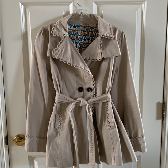 Tan miss me spring/fall jacket. It is missing two buttons in the front. Hence the price.