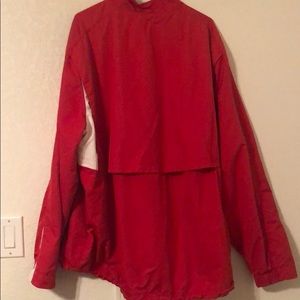 Red and white under armour light weight jacket. Has a vent flap in the back.