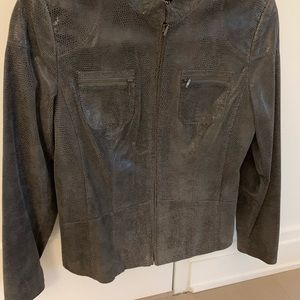 Dark grey jacket. Faux stingray look. Fill zip.