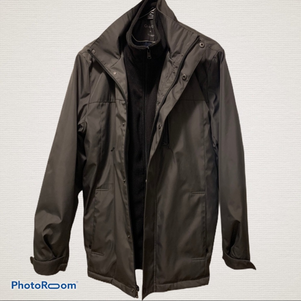Full-zip jacket from Calvin Klein, featuring a durable ripstop design and a fleece bib for added warmth.