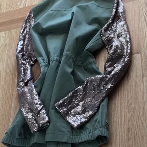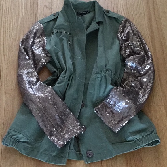Camouflage with sequins sleeve jacket