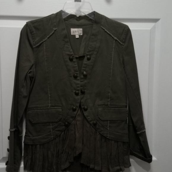 Army green with metal buttons.