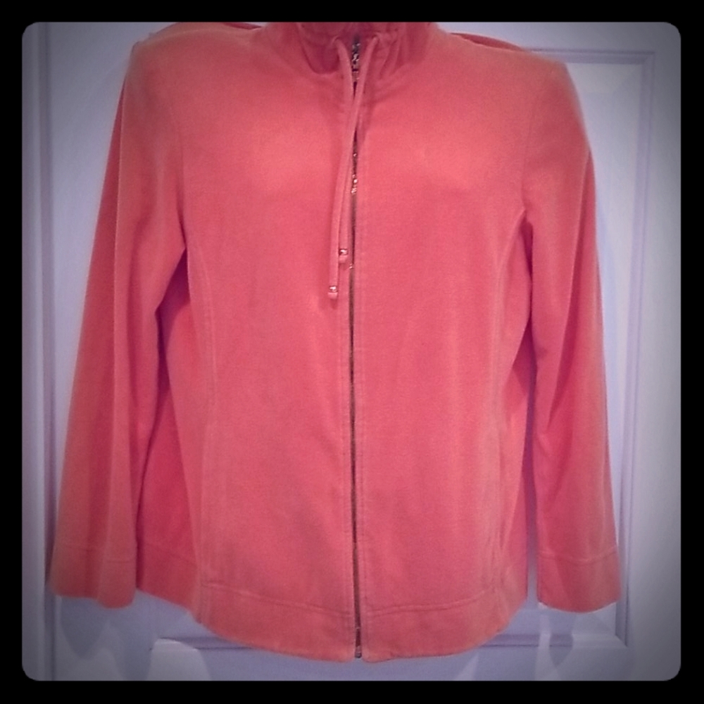 Orange velour jogging coat size small. With gold metal emblem on back. Gold zipper.