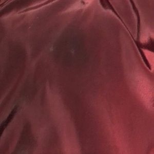 Small spots that will come out when washed, maroon with gold buttons and zipper