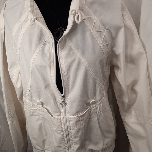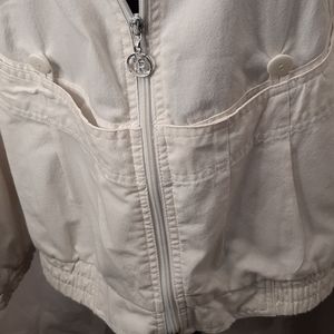 Lightweight off white cotton jacket long sleeves.Deep front pockets .