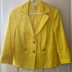 Really pretty yellow blazer. Metal buttons. Detailed stitching on collar, sides and sleeves. Size M. From Cato boutique.