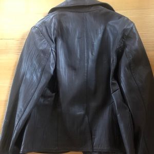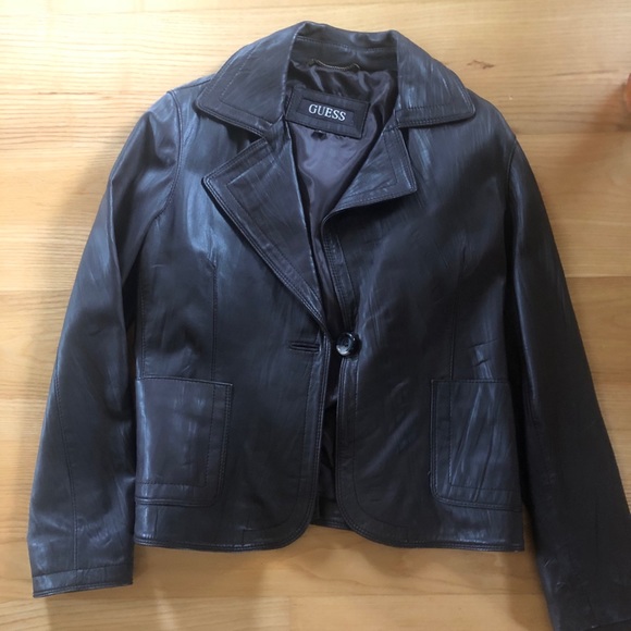 Dark brown leather jacket (the button is loose but can be sewn on tighter)