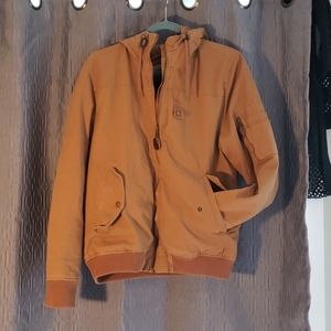 Men's jacket. Chesnut color. All zippers work. Really cute. Fits about a womens medium, a little on the small side. Pretty warm.