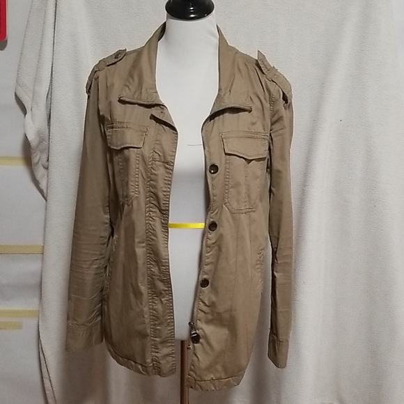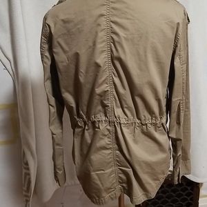 Light javket for fall or summer has buttons and a zipper..one shoulder button missing