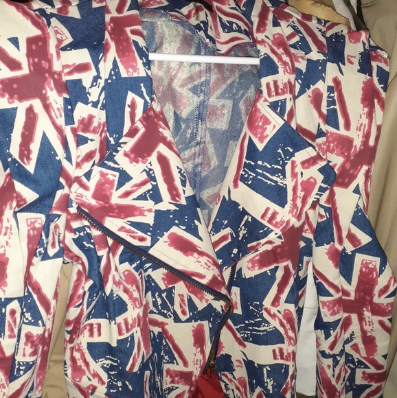 Red, White & Blue Stylish Puff Sleeve Jacket