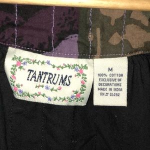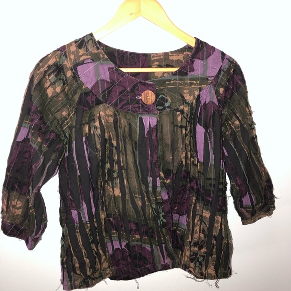 Fun black multi color jacket with one button closure.