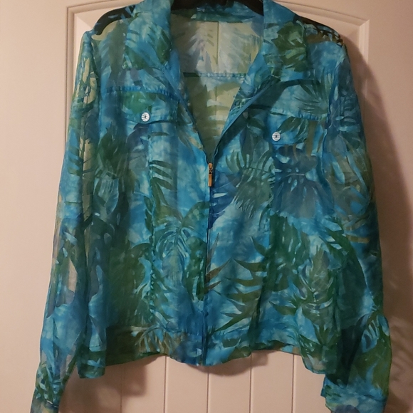 See Through Jacket Blue & Green Zips Up The Front With Two Front Pockets