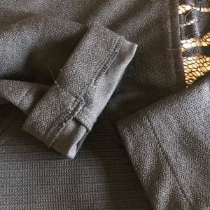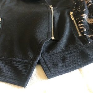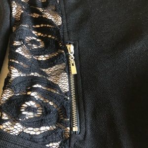 Lightly worn, has a bit of rain in the back long sleeve the zipper in the front does work does not have pockets has beautiful lace and weaving on the side and also on the arms.