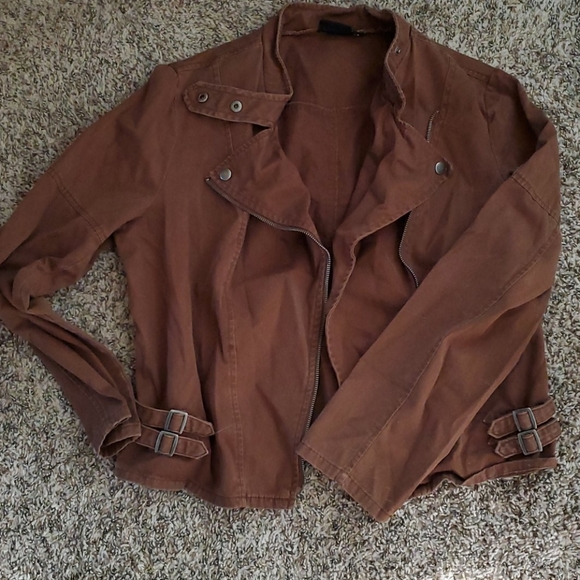 Brown biker Jacket. It has been worn only a few times. Check it out!