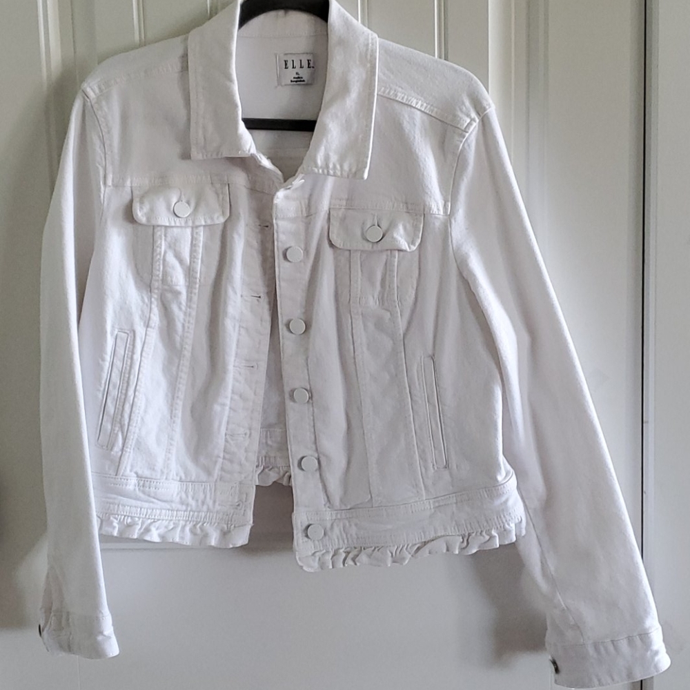 Jean jacket, small ruffle bottom, metal buttons, new condition