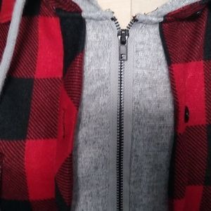 Lightweight checkered jacket with integrated hat!