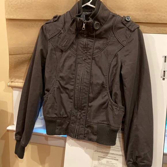 Gray bomber jacket. Light lining.
