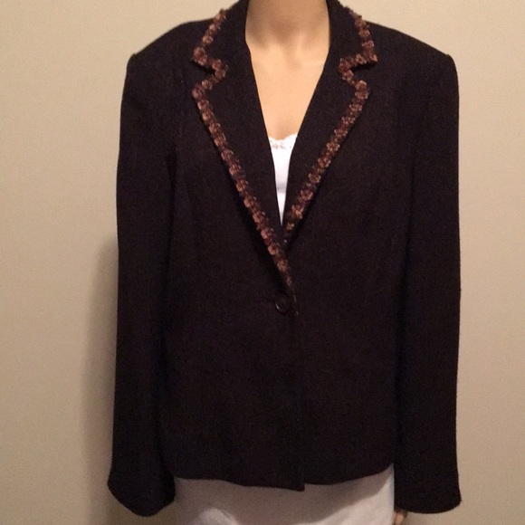 Dark Brown jacket with floral tan color embroidered trim on collar.