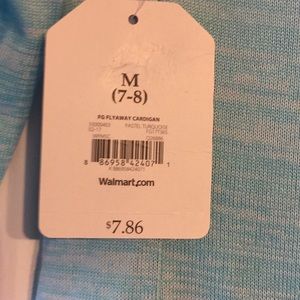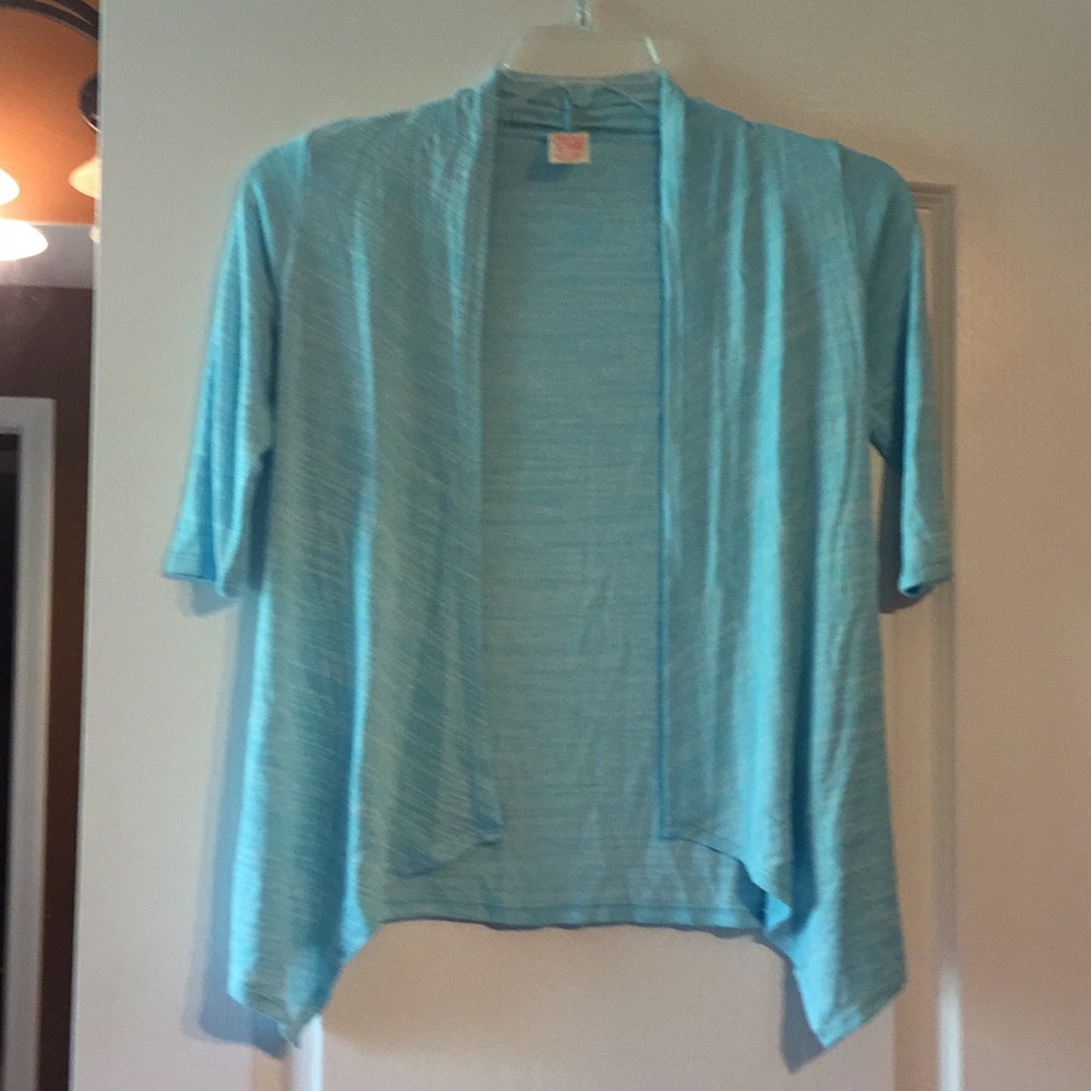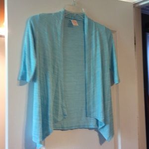 Lightweight pretty teal short cardigan. Great if you need a little something on your arms but not hot.