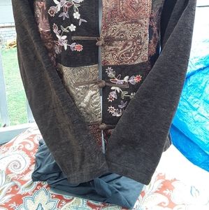 Beautiful Brown Brocade jacket. I have not worn it for some time now. Notice the detailed design on the front panels. Great for fall and the start of winter.