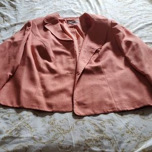 Orange jacket suit with 3 split at the bottom, 3 buttons in the front & it comes with a beautiful flower scarf