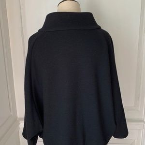 Black wool jacket by Jil Sander, made in Italy. Size 38, fits size 8-10. Sleeves above wrists, very Audrey Hepburn, great throw on jacket.