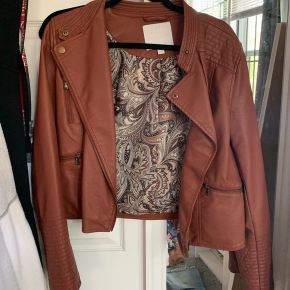 Brown leather jacket from Anthropologie. Never worn! Super cute size medium