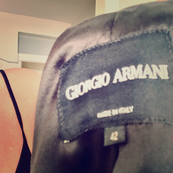 Vintage 1990s Armani jacket. Perfect condition size 10 but fits like an 6 in the shoulders. I am a size 4/6 and if I moved the class with his signature over 4 inches it would fit me well.