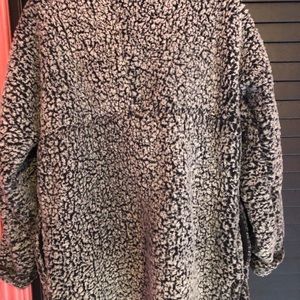 Unisex black and white light weight fleece like jacket Zipper down to middle Side pocket on each side Wore once