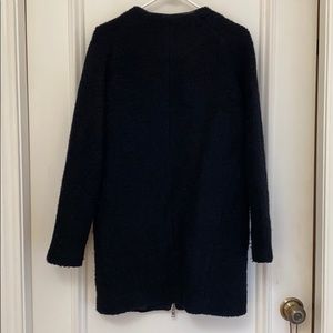 Black bouclè mid length zip up pea coat