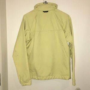 Lime yellow Columbia zip up. All zippers work great. Have a few small stains along left sleeve.