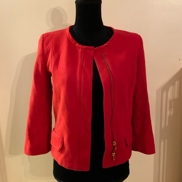 Red jacket with gold zipper