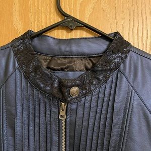 BKE pleather jacket with black lace detail along the collar and the bottoms of the sleeves and waist