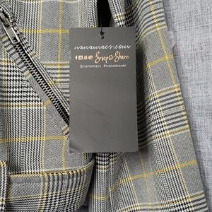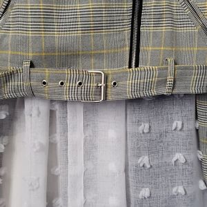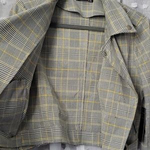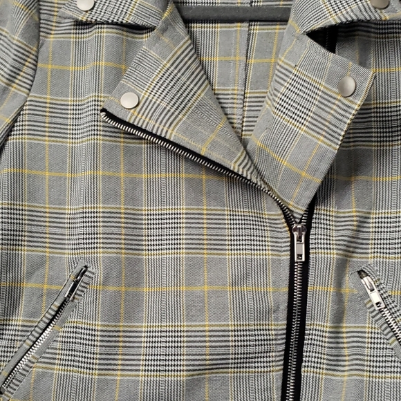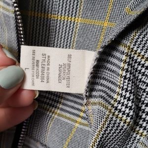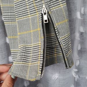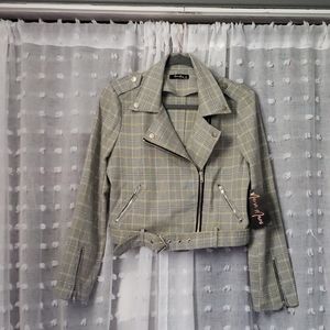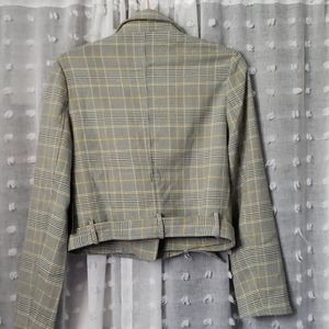 Cropped plaid jacket with zipper details. No inside lining