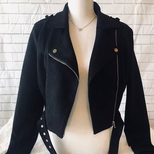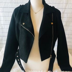 Black jacket with gold zippers