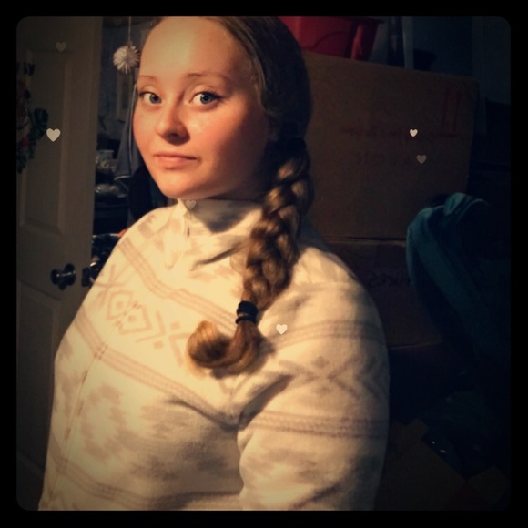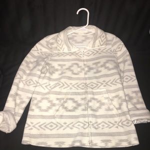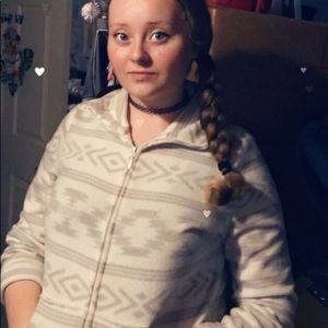 Indian patterned jacket. Without tags the were cut off. Only been worn a few times, a few hardly noticeable stains on zipper line and colar. Super warm and comfortable. And it fits true to size